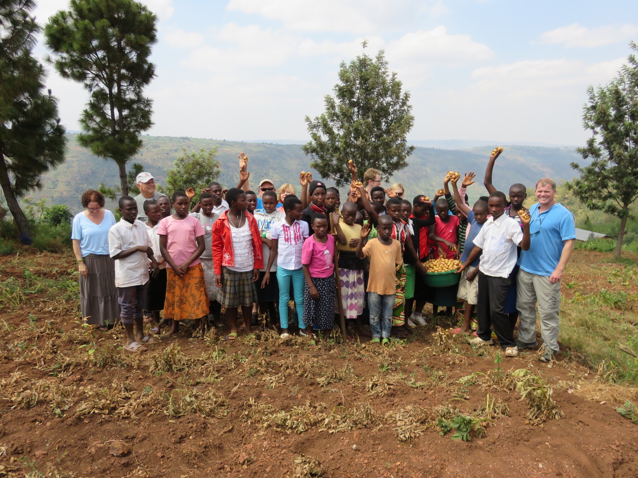 I woke up at my normal USA time of 6:20 this morning. Quick delightful shower before walking downstairs to breakfast.i was pleasantly surprised to see a huge buffet style breakfast and an omelet cook. I definitely needed a hardy breakfast! Fifteen of us met our Rwandian guide Epiphanie. She oversees all of ZOE Ministries in Rwanda. She is beyond fascinating! She explained that our schedule had slightly changed for today. She explained that the last Saturday of the month is a national clean up day and businesses are closed. So therefore today is going to be our first village day so we can see the ZOE kids working their prospective trades. We gathered on the van and traveled to our first stop about an hour away. We passed fields of sugar cane, coffee, soy bean, potato crops, rice fields and banana orchards. School kids on bikes and foot were everywhere. The village was Rwamiko-Gicumbi. The sponsored group was Umucyo. We met two girls who have been working in the ZOE program for two years. They had a roadside market selling avocados, potato and bananas. They were 17 and 16 years of age and each had two younger siblings they were supporting. We next visited a retail shop and met three girls ages 18, 17 and 16. Each of them were also head of the households caring for their younger siblibings and also ailing parents. One of the girl’s mom was blind, the other mother suffered from severe mental illness. Their seamstress business is flourishing! I bought a beautiful table cloth for 6000 Rwandan Francs ($7.69 US.) We packed up at drove about 2000ft in elevation to visit with the second sponsored group called Twizere. There were 69 kids that represented the Potato Group Project. We interacted with them and watched as they harvested and planted their crops. We were invited to a home visit. Odell is a 17 year girl who is over the household of her three siblings (17, 13 and 9.) their mother died 14 years ago and their father passed away 2 years ago. He is buried behind their small stable. They live without electricity or running water. The water well is 2 miles away. The only furniture they possess is a single sized bed that is shared by Odell and her youngest brother. Banana leaves and oil heat water. Through ZOE they have been able to sell vegetables and earn enough profit to buy a cow. They now eat three meals a day (porridge.) I used their outhouse which was nothing more than a drafty Adobe like structure with a small hole in the dirt floor. The inside was infested with mosquitos and flies. We then gathered at the nearby community center and all 69 ZOE kids presented us with songs and dance. We were honored with gifts ranging from aprons and hand bags to computer bags and stoles. These kids honored us with gifts they made! I cried tears of joy as I thanked and hugged each child. I am inspired by them because they are living examples of how God works and fulfills HIS promise. They are believers. I learned a huge lesson about hope and love today! We parted ways with tears of joy and cultural Rwandan songs. I had three kids hold on to me. Perhaps they didn’t want me to go and they were sad. But I am choosing to believe they were giving me a gift of hope and everlasting spirit! God bless them all!